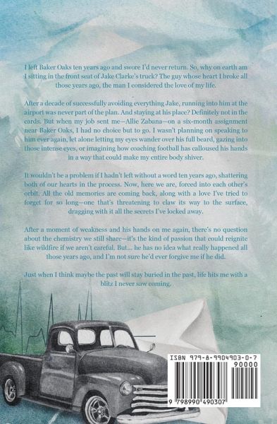 She was the one who got away. Allie Zabana has been in love with Jake Clarke for over a decade. He was her best friend and soulmate, but ten years ago, she walked away from it all and never told him why. It was a secret she had to keep, even if it meant breaking his heart. And her own. He was the one who stayed behind. When Allie comes back, she and Jake both know it's only for six months. That doesn't change the fact that the love between them hasn't faded. Which means Jake will take any chance he can get with Allie, even if he fears he's not enough to make her stay. In a love story full of fire and second chances, Allie and Jake must decide if they can deal with the truth, or if they will have to let each other go. How much can they forgive before they shut the door forever? How many secrets can they keep before the truth shatters their hearts?