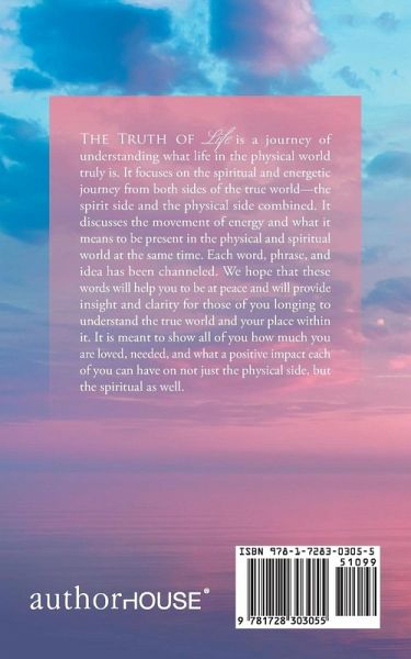 The Truth of Life is a journey of understanding what life in the physical world truly is. It focuses on the spiritual and energetic journey from both sides of the true world-the spirit side and the physical side combined. It discusses the movement of energy and what it means to be present in the physical and spiritual world at the same time. Each word, phrase, and idea has been channeled. We hope that these words will help you to be at peace and will provide insight and clarity for those of you longing to understand the true world and your place within it. It is meant to show all of you how much you are loved, needed, and what a positive impact each of you can have on not just the physical side, but the spiritual as well.