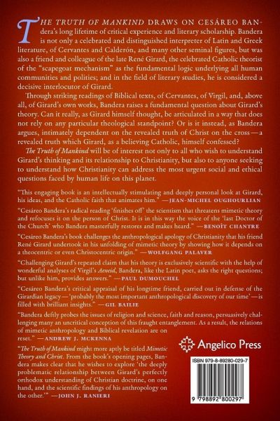 The Truth of Mankind draws on Cesáreo Bandera's long lifetime of critical experience and literary scholarship. Bandera is not only a celebrated and distinguished interpreter of Latin and Greek literature, of Cervantes and Calderón, and many other seminal figures, but was also a friend and colleague of the late René Girard, the celebrated Catholic theorist of the "scapegoat mechanism" as the fundamental logic underlying all human communities and polities; and in the field of literary studies, he is considered a decisive interlocutor of Girard. Through striking readings of Biblical texts, of Cervantes, of Virgil, and, above all, of Girard's own works, Bandera raises a fundamental question about Girard's theory. Can it really, as Girard himself thought, be articulated in a way that does not rely on any particular theological standpoint? Or is it instead, as Bandera argues, intimately dependent on the revealed truth of Christ on the cross-a revealed truth which Girard, as a believing Catholic, himself confessed? The Truth of Mankind will be of interest not only to all who wish to understand Girard's thinking and its relationship to Christianity, but also to anyone seeking to understand how Christianity can address the most urgent social and ethical questions faced by human life on this planet.
