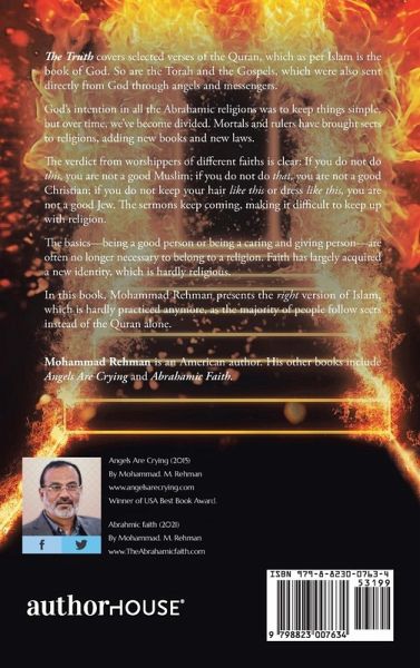 The Truth covers selected verses of the Quran, which as per Islam is the book of God. So are the Torah and the Gospels, which were also sent directly from God through angels and messengers. God's intention in all the Abrahamic religions was to keep things simple, but over time, we've become divided. Mortals and rulers have brought sects to religions, adding new books and new laws. The verdict from worshippers of different faiths is clear: If you do not do this, you are not a good Muslim; if you do not do that, you are not a good Christian; if you do not keep your hair like this or dress like this, you are not a good Jew. The sermons keep coming, making it difficult to keep up with religion. The basics-being a good person or being a caring and giving person-are often no longer necessary to belong to a religion. Faith has largely acquired a new identity, which is hardly religious. In this book, Mohammad Rehman presents the right version of Islam, which is hardly practiced anymore, as the majority of people follow sects instead of the Quran alone.