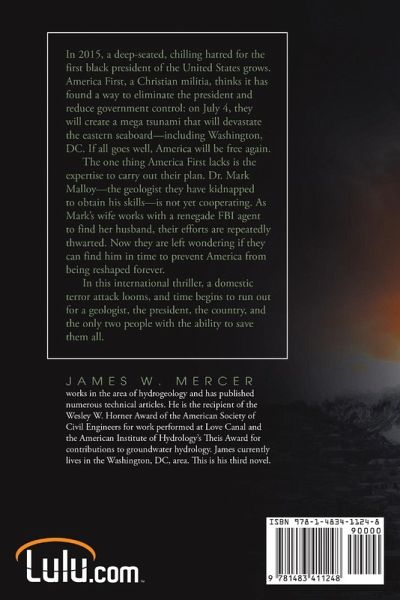In 2015, a deep-seated, chilling hatred for the first black president of the United States grows. America First, a Christian militia, thinks it has found a way to eliminate the president and reduce government control: on July 4, they will create a mega tsunami that will devastate the eastern seaboard-including Washington, DC. If all goes well, America will be free again. The one thing America First lacks is the expertise to carry out their plan. Dr. Mark Malloy-the geologist they have kidnapped to obtain his skills-is not yet cooperating. As Mark's wife works with a renegade FBI agent to find her husband, their efforts are repeatedly thwarted. Now they are left wondering if they can find him in time to prevent America from being reshaped forever. In this international thriller, a domestic terror attack looms, and time begins to run out for a geologist, the president, the country, and the only two people with the ability to save them all.