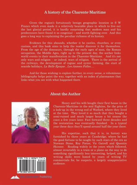 A history of the Charente Maritime. Given the region's fortuitously benign geographic location in S W France which even made it a relatively bearable place in which to live out the last glacial period, it is hardly surprising that modern man and his predecessors have found it so congenial and worth fighting over And this goes a long way to explaining the peculiar richness of its history Evidence for this abounds, whether it be castles, churches, or even casinos, and this book aims to help the reader discover it for themselves From the age of the dinosaurs, through the early ages of man, the Roman occupation, the Middle Ages, right up to the present day, the author links world events to their manifestation in the Charente Maritime And it's not only wars and religion or indeed, wars of religion There is the arrival of the railways, the development of cognac and oyster farming, the start of seaside holidays, La Belle Epoque Les Annees Folles And for those wishing to explore further, in every sense, a voluminous bibliography helps point the way, together with an index of placenames that links what you see with what happened there. About the Author Henry and his wife bought their first house in the Charente Maritime in the mid Eighties, for the price of a lock up in the wrong end of Watford, where they lived at the time They loved it so much that they bought a semi ruined and much larger house a bit nearer the coast a few years later Fast forward three decades and the restoration was eventually finished In a typical year these days they'll spend around half the year there. His expertise, such that it is, in history was furnished by three years at Cambridge, where he had the good fortune to be taught by such stars of the era as Norman Stone, Roy Porter, Vic Gatrell and Quentin Skinner Reading widely in the years which followed, almost invariably in a train or a plane on the way to do something significantly less interesting, helped, and his writing skills were honed by years of writing TV commercials for, he suspects, a largely unappreciative audience.