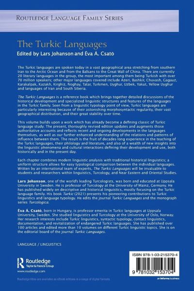 The Turkic Languages is a reference book which brings together detailed discussions of the historical development and specialized linguistic structures and features of the languages in the Turkic family. Seen from a linguistic typology point of view, Turkic languages are particularly interesting because of their astonishing morphosyntactic regularity, their vast geographical distribution, and their great stability over time.