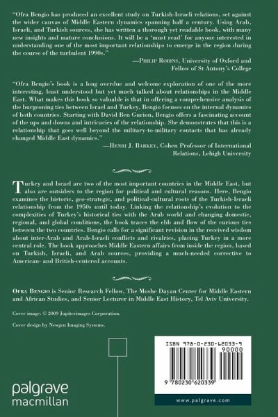 'Ofra Bengio has produced an excellent study on Turkish-Israeli relations, set against the wider canvas of Middle Eastern dynamics spanning half a century. Using Arab, Israeli and Turkish sources, she has written a thorough yet readable book, with many new insights and mature conclusions. It will be a 'must read' for anyone interested in understanding one of the most important relationships to emerge in the region during the course of the turbulent 1990s.'- Philip Robins, University of Oxford, UK and Fellow of St Antony's College