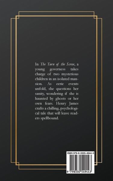 In The Turn of the Screw, a young governess takes charge of two mysterious children in an isolated mansion. As eerie events unfold, she questions her sanity, wondering if she is haunted by ghosts or her own fears. Henry James crafts a chilling, psychological tale that will leave readers spellbound.