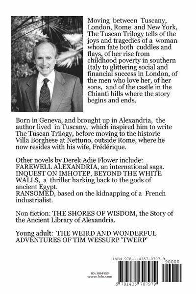 Moving between Tuscany, London, Rome and New York, The Tuscan Trilogy recounts the joys and tragedies of a woman whom fate both cuddles and flays, of her rise from childhood poverty in Southern Italy to glittering social and and financial success in London, of the men who love her, of her sons, and of the castle in the Chianti hills where the story begins and ends.