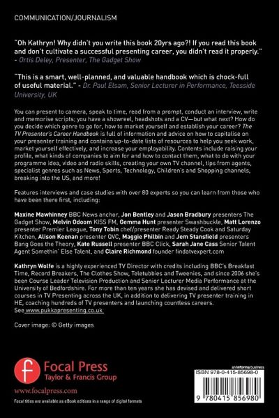 You can present to camera, speak to time, read autocue, conduct an interview, write and memorise scripts; you have a showreel, headshots and a CV-but what next? How do you decide which genre to go for, market yourself and establish your career? The TV Presenter's Career Handbook is full of information and advice on how to capitalise on your presenter training and contains up-to-date lists of resources to help you seek work, market yourself effectively, and increase your employability. Contents include raising your profile, what kinds of companies to aim for and how to contact them, what to do with your programme idea, video and radio skills, creating your own TV channel, tips from agents, specialist genres such as News, Sports, Technology, Children's and Shopping channels, breaking into the US, and more! Features interviews and case studies with over 80 experts so you can learn from those who have been there first, including: Maxine Mawhinney and Julian Worricker BBC News anchors, Jon Bentley and Jason Bradbury presenters The Gadget Show, Melvin Odoom KISS FM, Gemma Hunt presenter Swashbuckle, Matt Lorenzo presenter Premier League, Tony Tobin chef/presenter Ready Steady Cook and Saturday Kitchen, Alison Keenan and Marie-Francoise Wolff presenters QVC, Maggie Philbin and Jem Stansfield presenters Bang Goes the Theory, Kate Russell presenter BBC Click, Sarah Jane Cass Senior Talent Agent Somethin' Else Talent, Emma Barnett award-winning radio presenter, David McClelland Technology presenter Rip Off Britain, Louise Houghton and Tina Edwards presenters London Live, Fran Scott presenter Absolute Genius with Dick and Dom, and Claire Richmond founder findatvexpert.com