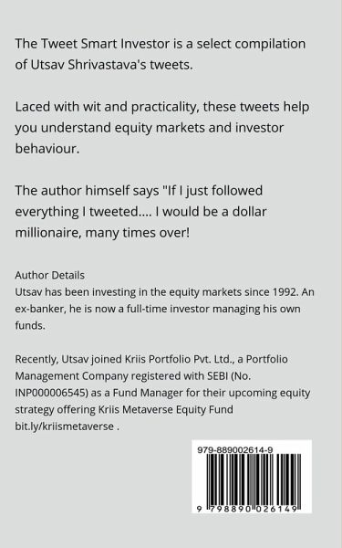 This is a select compilation of Utsav Shrivastava's tweets. Laced with wit and practicality, these tweets help you understand equity markets and investor behaviour. The Auhor huimself says : If Ijust followed everything I tweeted.... I would be a dollar millionnaire many times over !!