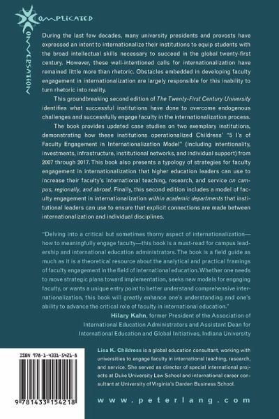 ''This book is a helpful contribution to the field of international education in not only outlining many of the key contours of higher education internationalization itself, but especially in focusing on the crucial and tricky area of faculty engagement in that process. I am glad that Dr. Childress decided to update «The Twenty-First Century University» with a second edition that includes important recent work, since this field is so rapidly changing.'' Elaine Meyer-Lee, President, NAFSA: Association of International Educators and Associate Vice President for Global Learning and Leadership Development, Agnes Scott College