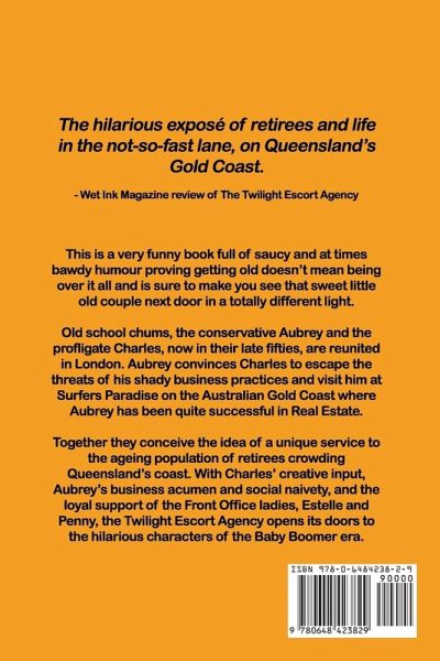 Old school chums, the conservative, Aubrey, and the profligate, Charles, now in their late fifties, are reunited in London. Aubrey convinces Charles to escape the threats of his shady business practices and visit him at Surfers Paradise on the Australian Gold Coast where Aubrey has been quite successful in Real Estate. Together they conceive the idea of a unique service to the ageing population of retirees swarming Queensland's Gold Coast. With Charles' creative input, Aubrey's business acumen and social naivety and the loyal support of the Front Office Ladies, Estelle and Penny, The Twilight Escort Agency opens its doors to the hilarious characters and goings -ons of the Baby Boomers era.