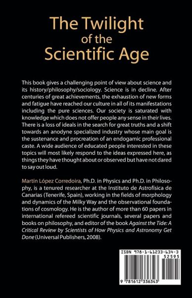 This book gives a challenging point of view about science and its history/philosophy/sociology. Science is in decline. After centuries of great achievements, the exhaustion of new forms and fatigue have reached our culture in all of its manifestations including the pure sciences. Our society is saturated with knowledge which does not offer people any sense in their lives. There is a loss of ideals in the search for great truths and a shift towards an anodyne specialized industry whose main goal is the sustenance and procreation of an endogamic professional caste. A wide audience of educated people interested in these topics will most likely respond to the ideas expressed here as things they have thought about or observed, but have not dared to say out loud.