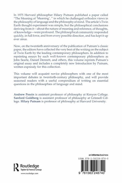 In 1975, Putnam published a paper called The Meaning of 'Meaning', which challenged the orthodox view in the philosophies of language and mind. The article's Twin Earth conclusions about meaning, thought and knowledge were shocking. This work contains writings on the subject of Twin Earth.