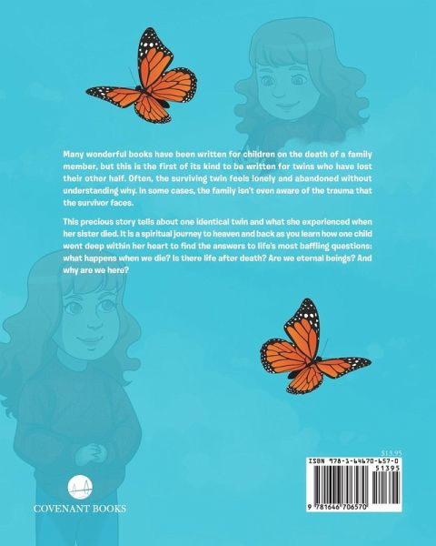 Many wonderful books have been written for children on the death of a family member, but this is the first of its kind to be written for twins who have lost their other half. Often, the surviving twin feels lonely and abandoned without understanding why. In some cases, the family isn't even aware of the trauma that the survivor faces. This precious story tells about one identical twin and what she experienced when her sister died. It is a spiritual journey to heaven and back as you learn how one child went deep within her heart to find the answers to life's most baffling questions: what happens when we die? Is there life after death? Are we eternal beings? And why are we here?