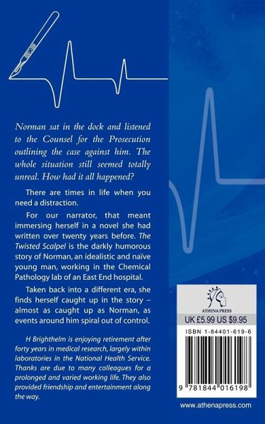 Norman sat in the dock and listened to the Counsel for the Prosecution outlining the case against him. The whole situation still seemed totally unreal. How had it all happened? There are times in life when you need a distraction. For our narrator, that meant immersing herself in a novel she had written over twenty years before. The Twisted Scalpel is the darkly humorous story of Norman, an idealistic and naïve young man, working in the Chemical Pathology lab of an East End hospital. Taken back into a different era, she finds herself caught up in the story - almost as caught up as Norman, as events around him spiral out of control. H Brighthelm is enjoying retirement after forty years in medical research, largely within laboratories in the National Health Service. Thanks are due to many colleagues for a prolonged and varied working life. They also provided friendship and entertainment along the way.