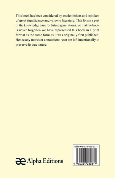 This book has been considered by academicians and scholars of great significance and value to literature. This forms a part of the knowledge base for future generations. So that the book is never forgotten we have represented this book in a print format as the same form as it was originally first published. Hence any marks or annotations seen are left intentionally to preserve its true nature.