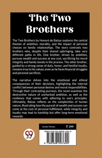The Two Brothers by Honoré de Balzac explores the central themes of ambition, morality, and the impact of personal choices on family relationships. The story contrasts two brothers who, despite their shared upbringing, take very different paths in life. One brother, driven by ambition, pursues wealth and success at any cost, sacrificing his moral integrity and family bonds in the process. The other brother, guided by a strong sense of duty, honor, and familial loyalty, remains true to his values, even as he faces financial struggles and personal sacrifices. The narrative delves into the emotional and ethical consequences of their decisions, highlighting the internal conflict between personal desires and moral responsibilities. Through their contrasting journeys, the novel examines the destructive nature of unchecked ambition, as well as the resilience that comes with adhering to one's principles. Ultimately, Balzac reflects on the complexities of human nature, illustrating how the pursuit of wealth and success can come at the cost of personal fulfillment, while integrity and loyalty may lead to hardship but offer long-term emotional rewards.