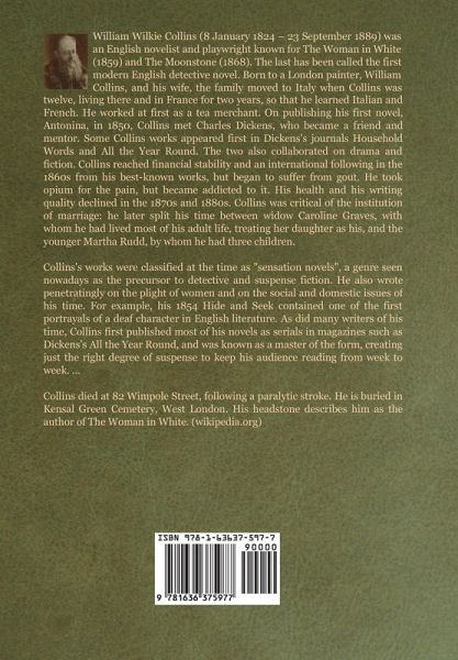 William Wilkie Collins (8 January 1824 - 23 September 1889) was an English novelist and playwright known for The Woman in White (1859) and The Moonstone (1868). The last has been called the first modern English detective novel. Born to a London painter, William Collins, and his wife, the family moved to Italy when Collins was twelve, living there and in France for two years, so that he learned Italian and French. He worked at first as a tea merchant. On publishing his first novel, Antonina, in 1850, Collins met Charles Dickens, who became a friend and mentor. Some Collins works appeared first…mehr