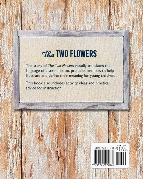 The book The Two Flowers visually translates the language of discrimination, prejudice and bias to help illustrate and define their meaning for young children. This book also includes activity ideas and practical advice for instruction. All illustrations, including the cover and back, were beautifully hand-painted in watercolor.