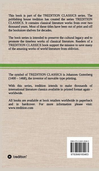This book (hardcover) is part of the TREDITION CLASSICS. It contains classical literature works from over two thousand years. Most of these titles have been out of print and off the bookstore shelves for decades. The book series is intended to preserve the cultural legacy and to promote the timeless works of classical literature. Readers of a TREDITION CLASSICS book support the mission to save many of the amazing works of world literature from oblivion. With this series, tredition intends to make thousands of international literature classics available in printed format again worldwide.