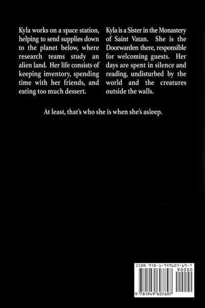 Kyla works on a space station, helping to send supplies down to the planet below, where research teams study an alien land. Her life consists of keeping inventory, spending time with her friends, and eating too much dessert. Kyla is a Sister in the Monastery of Saint Vatan. She is the Doorwarden of the Monastery, responsible for welcoming guests. Her days are spent in silence and reading, undisturbed by the world and the creatures outside the Monastery. At least, that's who she is when she's asleep.