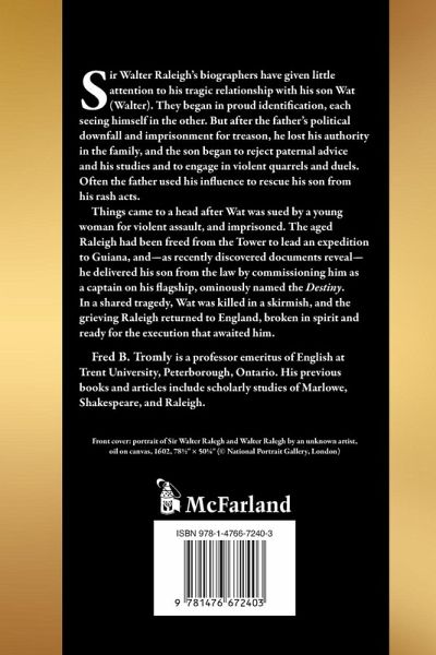 Sir Walter Raleigh's biographers have given little attention to his tragic relationship with his son Wat (Walter). They began in proud identification, each seeing himself in the other. But after the father's political downfall and imprisonment for treason, he lost his authority in the family, and the son began to reject paternal advice and his studies and to engage in violent quarrels and duels. Often the father used his influence to rescue his son from his rash acts. Things came to a head after Wat was sued by a young woman for violent assault, and imprisoned. The aged Raleigh had been freed from the Tower to lead an expedition to Guiana, and--as recently discovered documents reveal--he delivered his son from the law by commissioning him as a captain on his flagship, ominously named the Destiny. In a shared tragedy, Wat was killed in a skirmish, and the grieving Raleigh returned to England, broken in spirit and ready for the execution that awaited him.