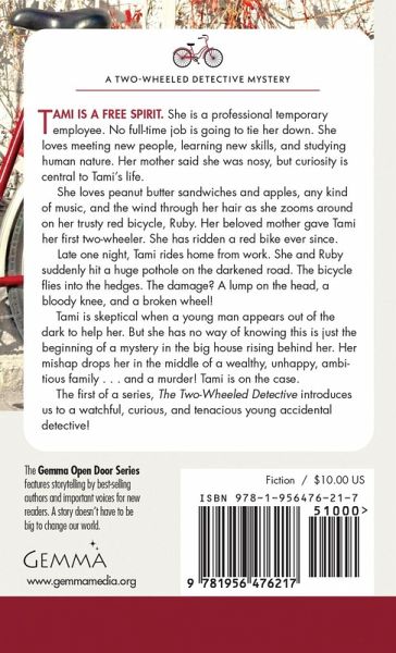 Tami is a free spirit. She is a professional temporary employee. No full-time job is going to tie her down. She loves meeting new people, learning new skills, and studying human nature. Her mother said she was nosy, but curiosity is central to Tami's life. She loves peanut butter sandwiches and apples, any kind of music, and the wind through her hair as she zooms around on her trusty red bicycle, Ruby. Her beloved mother gave Tami her first two-wheeler. She has ridden a red bike ever since. Late one night, Tami rides home from work. She and Ruby suddenly hit a huge pothole on the darkened road. The bicycle flies into the hedges. The damage? A lump on the head, a bloody knee, and a broken wheel! Tami is skeptical when a young man appears out of the dark to help her. But she has no way of knowing this is just the beginning of a mystery in the big house rising behind her. Her mishap drops her in the middle of a wealthy, unhappy, ambitious family...and a murder! Tami is on the case. The first of a series, The Two-Wheeled Detective introduces us to a watchful, curious, and tenacious young accidental detective!
