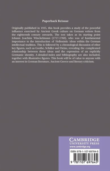 Originally published in 1935, this book provides a study of the powerful influence exercised by Ancient Greek culture on German writers from the eighteenth century onwards. The text takes as its starting point Johann Joachim Winckelmann (1717-68), who was of fundamental importance to the introduction of Hellenistic ideas within the German intellectual tradition. This is followed by a chronological discussion of other key figures, such as Goethe, Schiller and Heine, revealing the complicated relationship between these ideas and the expression of an explicitly Germanic identity. A detailed index and bibliography are also included, together with illustrative figures. This book will be of value to anyone with an interest in German literature, Ancient Greece and literary criticism.