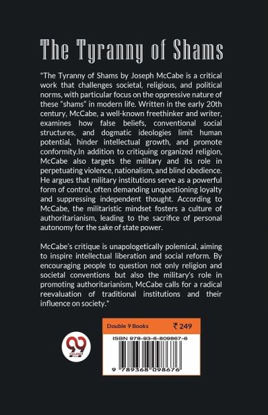 The Tyranny of Shams by Joseph McCabe is a critical work that challenges societal, religious, and political norms, with particular focus on the oppressive nature of these "shams" in modern life. Written in the early 20th century, McCabe, a well-known freethinker and writer, examines how false beliefs, conventional social structures, and dogmatic ideologies limit human potential, hinder intellectual growth, and promote conformity. In addition to critiquing organized religion, McCabe also targets the military and its role in perpetuating violence, nationalism, and blind obedience. He argues that military institutions serve as a powerful form of control, often demanding unquestioning loyalty and suppressing independent thought. According to McCabe, the militaristic mindset fosters a culture of authoritarianism, leading to the sacrifice of personal autonomy for the sake of state power. McCabe's critique is unapologetically polemical, aiming to inspire intellectual liberation and social reform. By encouraging people to question not only religion and societal conventions but also the military's role in promoting authoritarianism, McCabe calls for a radical reevaluation of traditional institutions and their influence on society.