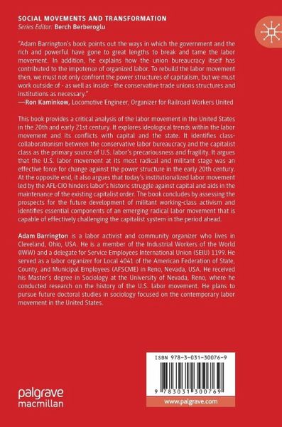 This book provides a critical analysis of the labor movement in the United States in the 20th and early 21st century. It explores ideological trends within the labor movement and its conflicts with capital and the state. It identifies class-collaborationism between the conservative labor bureaucracy and the capitalist class as the primary source of U.S. labor's precariousness and fragility. It argues that the U.S. labor movement at its most radical and militant stage was an effective force for change against the power structure in the early 20th century. At the opposite end, it also argues that today's institutionalized labor movement led by the AFL-CIO hinders labor's historic struggle against capital and aids in the maintenance of the existing capitalist order. The book concludes by assessing the prospects for the future development of militant working-class activism and identifies essential components of an emerging radical labor movement that is capable of effectively challenging the capitalist system in the period ahead.