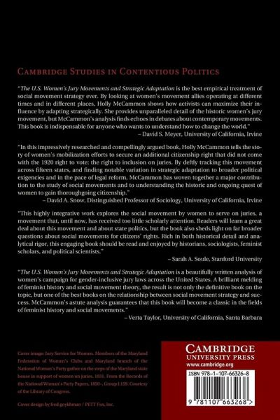 When women won the vote in the United States in 1920 they were still routinely barred from serving as jurors, but some began vigorous campaigns for a place in the jury box. This book tells the story of how women mobilized in fifteen states to change jury laws so that women could gain this additional right of citizenship. Some campaigns quickly succeeded; others took substantially longer. The book reveals that when women strategically adapted their tactics to the broader political environment, they were able to speed up the pace of jury reform, while less strategic movements took longer. A comparison of the more strategic women's jury movements with those that were less strategic shows that the former built coalitions with other women's groups, took advantage of political opportunities, had past experience in seeking legal reforms and confronted tensions and even conflict within their ranks in ways that bolstered their action.
