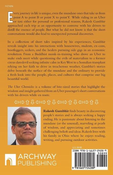 Every journey in life is unique, even the mundane ones that take us from point A to point B or point X to point Y. While riding in an Uber or taxi either for personal or professional reasons, Rakesh Gambhir approached each trip as an opportunity to converse with his drivers to distill the essence of people. But what he did not know is that the short conversations would also lead to unexpected personal discoveries. In a collection of short tales inspired by his experiences, Gambhir reveals insight into his interactions with housewives, students, ex-cons, bootleggers, seekers, and the healers pursuing side gigs in an economic revolution. From a Buddhist monk-in-training who drove an Uber to make ends meet while questioning the evils of materialism to a former circus daredevil seeking infinite calm in Key West to a Somalian transplant relying on her faith to drive in treacherous weather, Gambhir's stories delve beneath the surface of the mundane and the ordinary to provide a fresh look into the people, places, and cultures that comprise our big beautiful world. The Uber Chronicles is a volume of bite-sized stories that highlight the wisdom and insight gathered from an Uber passenger's short conversations with his drivers while en route.