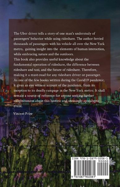 The Uber driver tells a story of one man's understudy of passengers' behavior while using rideshare. The author ferried thousands of passengers with his vehicle all over the New York metro, gaining insight into the elements of human interaction, while embracing nature and the outdoors. This book also provides useful knowledge about the fundamental operation of rideshare, the difference between rideshare and taxi, and the future of rideshare. Therefore, making it a must-read for any rideshare driver or passenger. As one of the few books written during the Covid19 pandemic, it gives an eye witness account of the pandemic, from its inception to its deadly rampage in the New York metro. It shall remain a source of reference for anyone seeking further enlightenment about this historic and seemingly apocalyptic event.