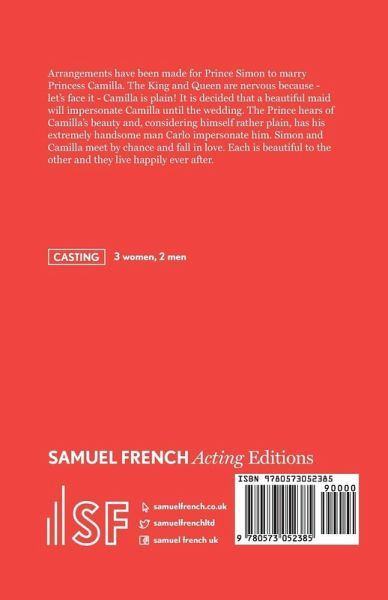 Arrangements have been made for Prince Simon to marry Princess Camilla. The King and Queen are nervous because - let's face it - Camilla is plain! It is decided that a beautiful maid will impersonate Camilla until the wedding. The Prince hears of Camilla's beauty and, considering himself rather plain, has his extremely handsome man Carlo impersonate him. Simon and Camilla meet by chance and fall in love. Each is beautiful to the other and they live happily ever after.-3 women, 2 men