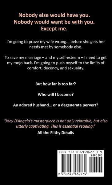 Nobody else would have you. Nobody would want be with you. I'm going to prove my wife wrong. I need to prove her wrong, before she gets her needs met by somebody else. To save my marriage - and my self-esteem - I need to get my mojo back. I'm going to push myself to the limits, whether it's late night sexting, anonymous hook-ups, or group sex with strangers. But how far is too far? Who will I become? An adored husband... or a degenerate pervert? This brutally honest and breath-takingly erotic journey of self-discovery contains graphic adult material.