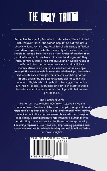 The human mind is the greatest danger to the human body. Borderline Personality Disorder Borderline Personality Disorder is a disorder of the mind that disturbs over 10% of the human population but remains a chaotic enigma to this day. Fatalities of this deadly affliction are often trapped inside the impulsivity of their own selves, unable to escape from their own lethal cycles of manipulation and self-blame. Borderline victims can be dangerous. They linger, confined, inside their impetuous and neurotic minds of self-mutilation, perpetual accusations, and malicious manipulations in attempts to pursue unknown cravings. Amongst the most volatile in romantic relationships, borderline individuals entice their partners before exhibiting callous apathy and infatuated terrorizations due to conflicting emotions. High levels of impulsivity also trigger borderline sufferers to engage in physical and emotional self-injurious behaviors when the universe fails to align with their severe philosophies. The Emotional Mind The human race remains indefinitely captive inside the emotional mind. Emotions dictate our everyday judgments and responses as opposed to our logical and rational mind, acting on lack of inhibitions and repressed traumatic pain despite cognizance. Societal pressure has influenced humanity into eradicating raw emotions for the illusion of acceptance by becoming replicas of everyone else, imprisoning passions and sensations waiting to unleash, locking our individualities inside our own thoughts.