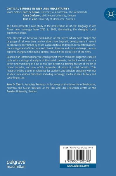 Zinn presents an historical examination of the forces which have shaped the language of risk over time, and considers how linguistic developments in recent decades are underpinned by issues such as cultural and structural transformations, the management of infectious and chronic diseases and climate change. He also explores changes in the public sphere, including the production of the news.