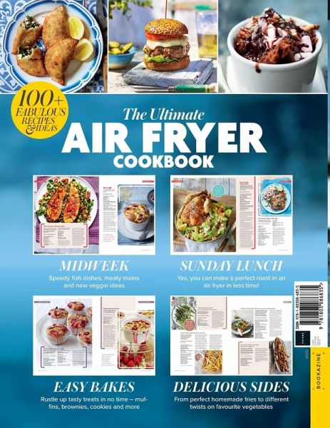 Air fryers have become a must-have in the modern kitchen, and everyone's jumping on the trend. So we've packed this bookazine with recipes for delicious snacks, easy sides, must-make mains and simple sweet treats. Read our tips on choosing an air fryer, what's great to cook in it, and what isn't. It's perfect for small roasts, with no large oven to clean. Of course, anything you'd normally fry, such as fries or chicken nuggets, gives a perfect result without all the oil, so your calorie count will thank you. How does it work? It doesn't technically fry anything, but has heat which radiates from a heating element, with a powerful fan to circulate the hot air - hence it works like a convection oven. So think of your air fryer as a mini convection oven, which heats much faster than a conventional oven, and which may help to save on energy bills. From cold, most models will be at the correct temperature in under three minutes, whereas a standard oven will be over ten minutes, if not more. It will defi nitely save time, and you'll be amazed at how versatile it is. There is a huge choice out there - some are combined with a pressure cooker, some have two drawers to cook diff erent foods at the same time, others have a large, single drawer. All you need is suffi cient space on your work surface, with a little space behind to keep the fan clear and circulating. You'll soon discover it's a master for re-heating food. Much as we love a microwave, an air fryer will reheat a slice of quiche or pizza until crisp and crunchy, which a microwave will fail to do. From the simplest ideas to stunning souffl és, make your air fryer work for you. And it's easy enough to get the kids involved, too, which can only be a bonus