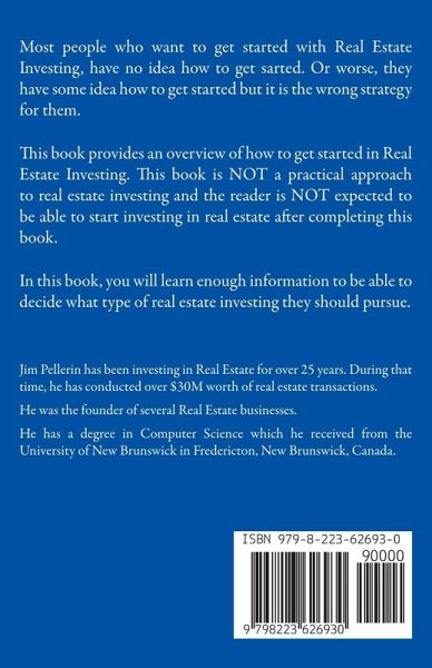Most people who want to get started with Real Estate Investing, have no idea how to get started. Or worse, they have some idea how to get started but it is the wrong strategy for them. This book provides an overview of how to get started in Real Estate Investing. This book is NOT a practical approach to real estate investing and the reader is NOT expected to be able to start investing in real estate after completing this book. In this book, you will learn enough information to be able to decide what type of real estate investing they should pursue.