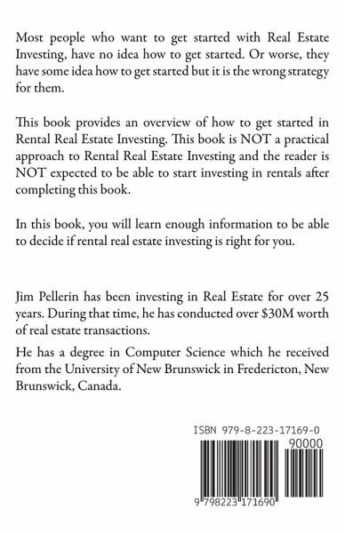 Most people who want to get started with Real Estate Investing, have no idea how to get started. Or worse, they have some idea how to get started but it is the wrong strategy for them. This book provides an overview of how to get started in Rental Real Estate Investing. This book is NOT a practical approach to Rental Real Estate Investing and the reader is NOT expected to be able to start investing in rentals after completing this book. In this book, you will learn enough information to be able to decide if rental real estate investing is right for you.