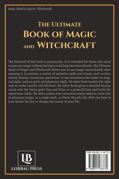 Transform Your Life with Real Spells, Rituals, and Other Practices Taught in This Book The keyword of this book is practicality. It is intended for those who want to practice magic without having to read long theoretical books. The Ultimate Book of Magic and Witchcraft allows you to use magic immediately after opening it. It contains a variety of exclusive spells and rituals, such as love, money, beauty, evocations, protection. It also introduces the reader to magical sigils, such as spirit and planetary sigils. No other book teaches the right way to evoke Lucifer and Michael. No other book gives a detailed beauty ritual with the Norse gods Frey and Freya or a powerful love spell with the mysterious Lilith. No other author ever covered so many subjects, from love to planetary magic, in a single work, as Pierre Macedo did. No matter if you are a white or black magic practitioner, a Wicca follower, or if you need some spiritual help, this work was written for you. Now you have in your hands the key to change the course of your life. Here’s a Small Sample of What You Will Find in This Book of Witchcraft, Rituals and Magic Spells Instructions on how to prepare yourself to perform rituals, cast spells, etc. White magic spells Black magic spells Love spells Manipulation spells Breaking and cleansing spells Magical evocation: instructions on how to summon spirits Planetary magic It’s worth mentioning that this book contains real spells, rituals, and other witchcraft practices that work if you follow all the instructions provided.