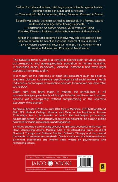 A handbook for sex education that is ¿ Value Based ¿ Culture Specific ¿ Age Appropriate The Ultimate Book of Sex is a complete source book for value-based, culture-specific and age-appropriate education in human sexuality. It discusses social, behavioral, relational, emotional and even legal aspects of human sexuality. It is meant for the reference of adult sex-educators such as parents, teachers, doctors, counsellors, psychologists and social workers. Adult individuals and couples who seek to educate themselves can also refer to this book. Great care has been taken to respect the sensibilities of all communities/groups/schools of thought in India, and to make it culture-specific yet contemporary, without compromising on the scientific accuracy of the subject.