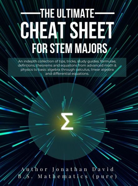"The Ultimate Cheat Sheet for Math and Physics" is a comprehensive guide written by renowned mathematician and physicist gone fiction author, Jonathan David. This indispensable resource is designed to equip students with a powerful arsenal of tips, tricks, and essential knowledge needed to excel in mathematics and physics. Whether you're studying algebra, trigonometry, precalculus, or diving into the intricacies of differential calculus (Calc 1), integral calculus (Calc 2), several variable calculus (Calc 3), multivariable and vector calculus, linear algebra, differential equations, or physics, this book has got you covered. Inside these pages, you'll find an extensive collection of formulas, theorems, definitions, and equations meticulously curated and organized for easy reference. Jonathan David's expertise shines through as he presents complex mathematical and physical concepts in a clear and accessible manner, making even the most challenging subjects approachable. But "The Ultimate Cheat Sheet for Math and Physics" goes beyond simply providing formulas and theorems. Recognizing that success in college and beyond requires more than raw knowledge, the book also includes a comprehensive guide on how to study effectively. With valuable insights and practical tips, Jonathan David shares his wisdom on time management, note-taking techniques, problem-solving strategies, and exam preparation. You'll learn how to harness your full potential as a college student, honing the skills necessary to thrive in the real world. Whether you're a freshman just starting your journey into mathematics and physics or a seasoned student looking to reinforce your understanding, this book is an essential companion. With its comprehensive coverage, user-friendly layout, and expert guidance, "The Ultimate Cheat Sheet for Math and Physics" empowers you to conquer your coursework, master complex concepts, and develop the skills you need to succeed academically and professionally. Don't let the complexities of math and physics intimidate you. Let Jonathan David's "The Ultimate Cheat Sheet for Math and Physics" be your trusted companion as you embark on your educational and career aspirations. Unlock your potential, build a solid foundation, and become a confident problem solver with this indispensable resource.