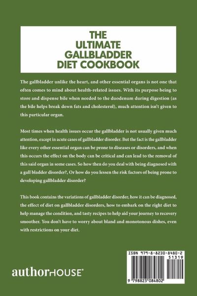 The gallbladder unlike the heart, and other essential organs is not one that often comes to mind about health-related issues. With its purpose being to store and dispense bile when needed to the duodenum during digestion (as the bile helps break down fats and cholesterol), much attention isn't given to this particular organ. Most times when health issues occur the gallbladder is not usually given much attention, except in acute cases of gallbladder disorder. But the fact is the gallbladder like every other essential organ can be prone to diseases or disorders, and when this occurs the effect on the body can be critical and can lead to the removal of this said organ in some cases. So how then do you deal with being diagnosed with a gall bladder disorder?, Or how do you lessen the risk factors of being prone to developing gallbladder disorder? This book contains the variations of gallbladder disorder, how it can be diagnosed, the effect of diet on gallbladder disorders, how to embark on the right diet to help manage the condition, and tasty recipes to help aid your journey to recovery smoother. You don't have to worry about bland and monotonous dishes, even with restrictions on your diet.