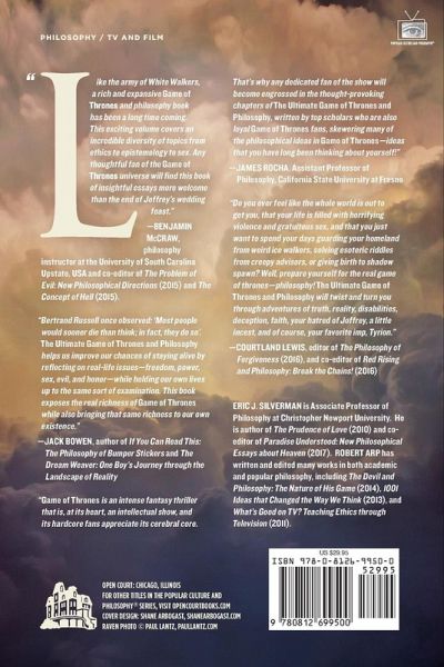 Trade paperback. This is a collection of doze dozens of new essays by experts who examine philosophical questions raised by the story of "Game of Thrones".