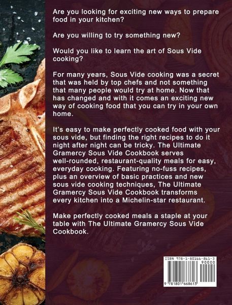 Are you looking for exciting new ways to prepare food in your kitchen? Are you willing to try something new? Would you like to learn the art of Sous Vide cooking? For many years, Sous Vide cooking was a secret that was held by top chefs and not something that many people would try at home. Now that has changed and with it comes an exciting new way of cooking food that you can try in your own home. It's easy to make perfectly cooked food with your sous vide, but finding the right recipes to do it night after night can be tricky. The Ultimate Gramercy Sous Vide Cookbook serves well-rounded, restaurant-quality meals for easy, everyday cooking. Featuring no-fuss recipes, plus an overview of basic practices and new sous vide cooking techniques, The Ultimate Gramercy Sous Vide Cookbook transforms every kitchen into a Michelin-star restaurant. Make perfectly cooked meals a staple at your table with The Ultimate Gramercy Sous Vide Cookbook.