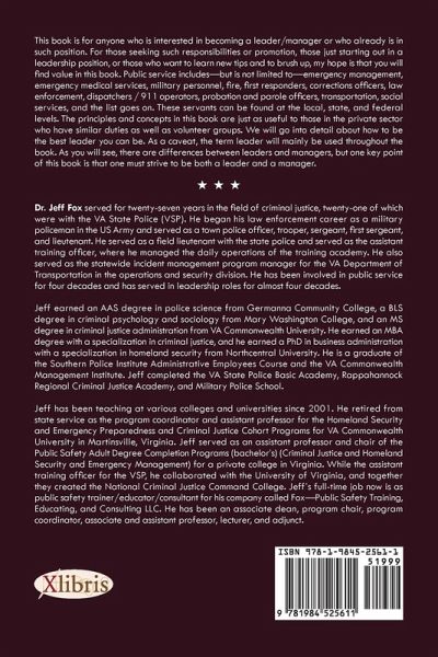 This book is for anyone who is interested in becoming a leader/manager or who already is in such position. For those seeking such responsibilities or promotion, those just starting out in a leadership position, or those who want to learn new tips and to brush up, my hope is that you will find value in this book. Public service includesbut is not limited toemergency management, emergency medical services, military personnel, fire, first responders, corrections officers, law enforcement, dispatchers / 911 operators, probation and parole officers, transportation, social services, and the list goes on. These servants can be found at the local, state, and federal levels. The principles and concepts in this book are just as useful to those in the private sector who have similar duties as well as volunteer groups. We will go into detail about how to be the best leader you can be. As a caveat, the term leader will mainly be used throughout the book. As you will see, there are differences between leaders and managers, but one key point of this book is that one must strive to be both a leader and a manager.
