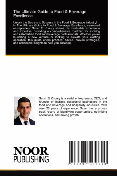 Unlock the Secrets to Success in the Food & Beverage Industry!In The Ultimate Guide to Food & Beverage Excellence, seasoned entrepreneur Samir El Khoury shares his invaluable experience and expertise, providing a comprehensive roadmap for aspiring and established food and beverage professionals. Whether you're launching a new venture or looking to elevate your existing operation, this guide offers practical advice, proven strategies, and actionable insights to help you succeed.