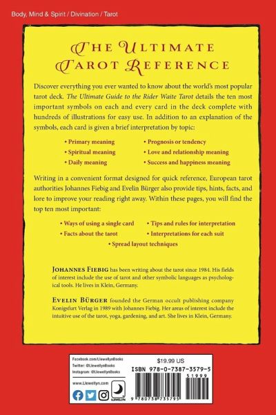 Evelin Bürger and Johannes Fiebig have written more than twenty tarot books, which have reached a circulation of over two million copies and have been translated in more than a dozen languages in total. For Evelin and Johannes, the fascination of dealing the tarot derives from three main sources: You learn to use, to understand, and if need be to get through with 1) cultural role models, 2) the power of chance, and 3) a distinct experience of your own kind of view. Many standards of contemporary tarot have been discovered or created by Bürger and Fiebig, including: "the card of the day" as the basic practice of the personal, creative use of the cards; the "double-face" (multiple meanings) of each card and each detail thereof; and the understanding of the "individual perception" (focus of view, affectedness etc.) of the cards that mirrors the personal perception in everyday life. Fiebig and Bürger founded the German Königsfurt Verlag in 1989, which became a base of the current Königsfurt-Urania & AGM-Urania publishing companies. They have two adult children and live close to the city of Kiel at the Baltic Sea, Germany.