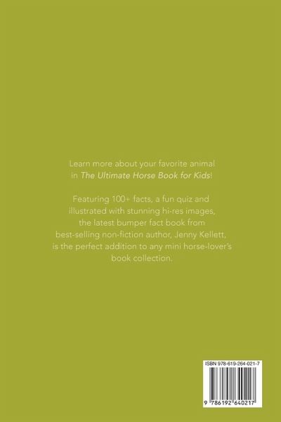 The Ultimate Horse Book for Kids gallops through 100+ amazing facts and real photos. Meet favourite breeds-such as the Arabian, Mustang, Clydesdale, see how horses were first domesticated, and find out what makes a pony different from a full-size horse. The book ends with a quick quiz so readers can test what they've learned. Perfect for ages 8-12. Here are just a few of the amazing horse facts you'll learn in this book:Did you know that horses' teeth take up more space in their heads than their brains do? Or that it's impossible for horses to burp or vomit? And did you know that in a group of horses, the dominant female always takes the lead - not the male? With more than 20 stunning horse and pony pictures, The Ultimate Horse Book for Kids is perfect for teaching children to read while letting them learn about the fascinating world of horses and ponies. This book is ideal for long car journeys and bedtime reading, and is sure to turn your child into a horse expert in no time! So don't wait - scroll up and click Buy Now to get your copy today!