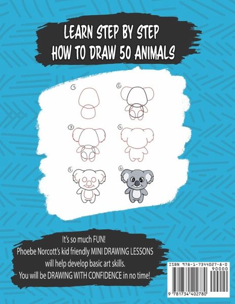 It's so much FUN! Budding artists grab your pencils and draw 50 AMAZINGLY CUTE ANIMALS with simple step by step instructions. Phoebe Norcott's kid friendly STEP BY STEP DRAWING EXAMPLES will help develop basic art skills. You will be DRAWING WITH CONFIDENCE in no time!! Features:Easy for beginners 50 cute step by step animal drawing examples Full color print